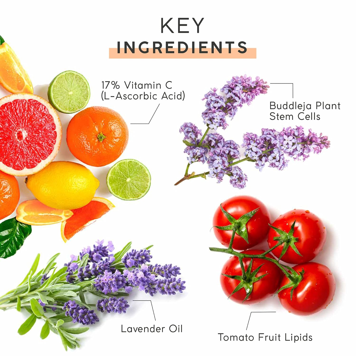 Advanced multi-tasking Vitamin C formula reduces the appearance of lines and wrinkles. A high active level of 17% L-Ascorbic Acid, the only effective anti-aging form of Vitamin C, and Buddleja Plant Stem Cells brighten, protect against photo-damage, and combat the visible signs of aging. Dermatologist and Allergy tested